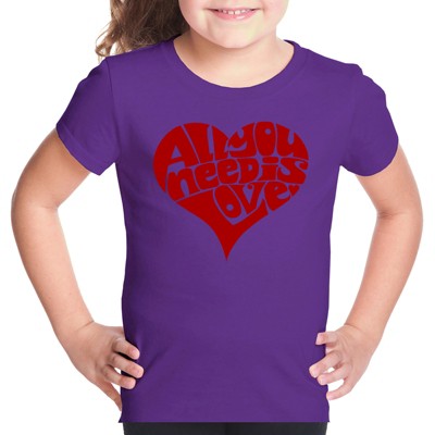 LA Pop Art Girl's Word Art T-shirt - Script Love Heart Purple X Small