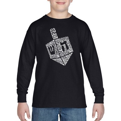 LA Pop Art Hanukkah Dreidel - Boy's Word Art Long Sleeve T-Shirt Royal Large - 1 of 4