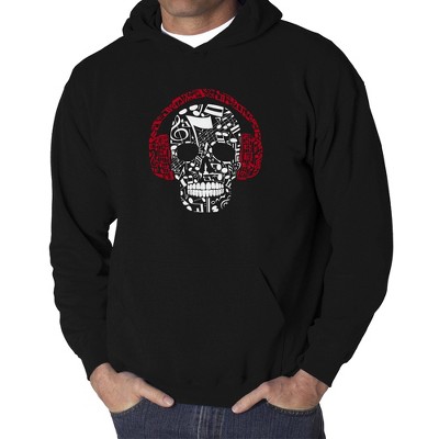 LA Pop Art Men's Word Art Hooded Sweatshirt - Music Notes Skull
