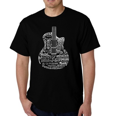 LA Pop Art Men's Word Art Long Sleeve T-shirt - Languages Guitar