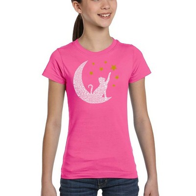 LA Pop Art Meowy Christmas Tree - Girl's Word Art T-Shirt Pink Large