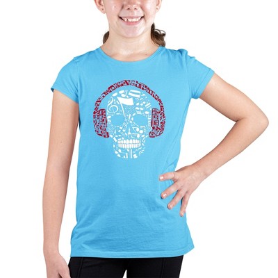 LA Pop Art Music Notes Guitar - Girl's Word Art T-Shirt Royal Medium
