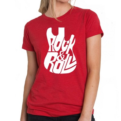 LA Pop Art Music Notes Guitar - Women's Premium Blend Word Art T-Shirt Red Medium