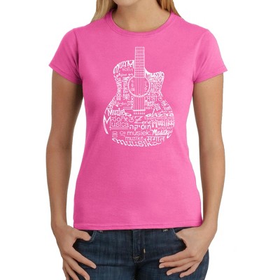 LA Pop Art Music Notes Guitar - Women's Word Art T-Shirt