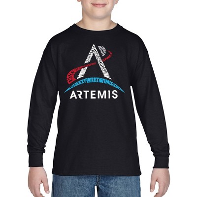 LA Pop Art NASA Artemis Logo - Girl's Word Art Long Sleeve T-Shirt Black Large
