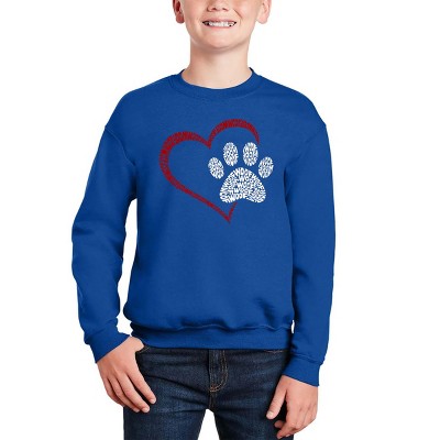 LA Pop Art Paw Heart - Girl's Word Art Crewneck Sweatshirt Royal X Small