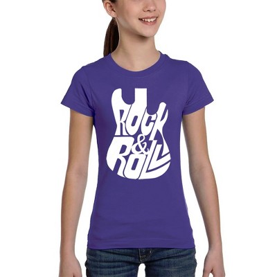 LA Pop Art Rock n Roll Skull - Girl's Word Art T-Shirt Purple Small