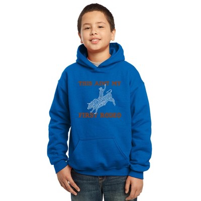 LA Pop Art This Aint My First Rodeo - Girl's Word Art Crewneck Sweatshirt Royal X Large