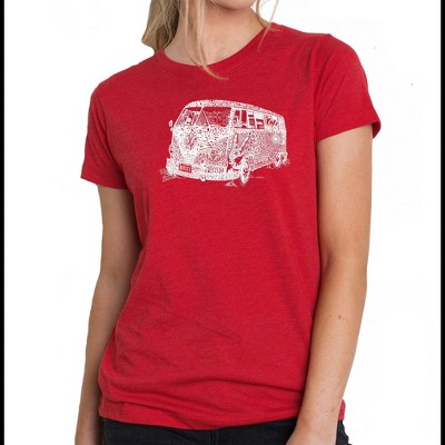 LA Pop Art Women's Premium Blend Word Art T-shirt - Pug Face Red X Large