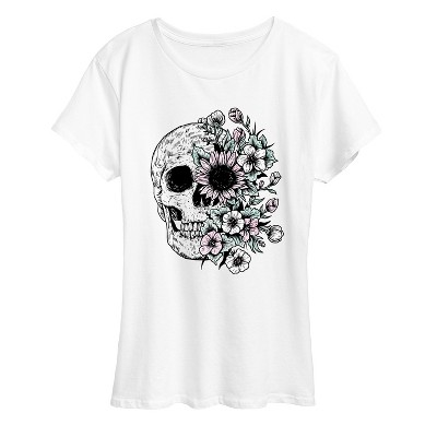 LA Pop Art Women's Word Art V-Neck T-Shirt - Flower Skull Black X Small