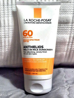 La Roche Posay Anthelios Melt-In Body & Face Sunscreen SPF 60 is a broad spectrum SPF 60 UVA/UVB sunscreen for face and body that is non-greasy and fast-absorbing. It leaves skin hydrated and smooth with a velvety texture. It is suitable for all skin types, including sensitive skin. It is paraben-free and fragrance-free.