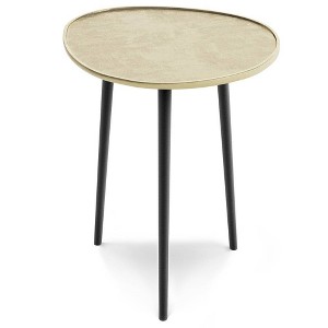 - Featues a round gold top complemented by a three-legged tri pod design in black