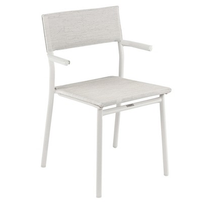 Lafuma Batyline Duo ORON Sustainable Aluminum Weather Resistant Stackable Outdoor Dining Armchair w/287 Pound Capacity, Titanium/Obsidian (Set of 2)