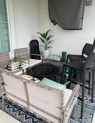 Blending classic and contemporary elements, the Rue resin bar stool is a fantastic choice for sipping cocktails by the pool or perching at the outdoor bar for a refreshing drink. Made from eco-friendly materials, this piece features a woven construction that adds texture to your space, and a water and UV-resistant design that makes it perfect for outdoor use. Designed for convenience, these bar stools can be easily stacked for hassle-free storage, and unstacked and placed as needed.