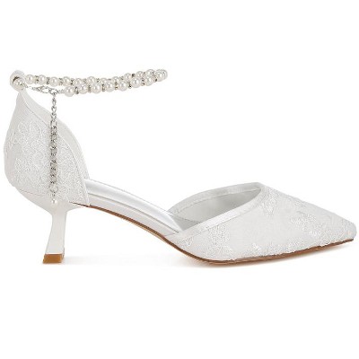 The lace mesh sandals are a must-have this season with their beautiful anklet with pearls and rhinestones detail. The kitten heels are right on trend and the lace detail just adds the right touch of sensuous to the mix. The soft cushion insole makes them a comfortable pair! Type: Sandals Upper Material: Lace + Mesh Outer Sole: TPR Closed Pointed Toe Kitten Heel Pearls & Rhinestones Ankle Detail Detachable Lace Up Detail Comfortable Cushion Insoles Heel Height: 2.5 inches RCSH5112