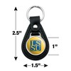 - QUALITY MATERIAL: Our durable round keychain is crafted from leather with a glossy resin-topped emblem featured design shown on one side. Approximately 1.5" (3.8cm) x 2.5" (6.4cm) in overall size, emblem is 1" (2.5cm)..
