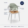 The booster has been a game changer for meal times because it fits perfectly in our chairs and our baby can sit right at the table with us which she seems to enjoy so much more now. I like the long term functionality of the booster and how we can use this going into toddler years and beyond. The size of the booster is a little big for my 10 month old so I likely need to purchase the infant attachment. I do wish the tray came with the booster for the price of it all but overall it’s been a great purchase.