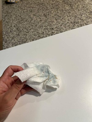 Have been very happy with the Lalo products thus far however I noticed after wiping this mat with simply a wet paper towel (water only) the color came off the mat leaving dye on the towel…. makes me wonder why ???? The size is great but continues to “roll” up even though we’ve turned it over & over, even despite the thickness of the material