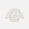 - Mess? Caught! Long sleeves provide full coverage from neck to lap while the large catch-all pocket keeps crumbs and spills off laps and floors.