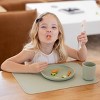 This placemat is so helpful in leaving the table a little less messy. When I put food on the placemat, it's also easier for my toddler to pick up since the food doesn't slide around the table.