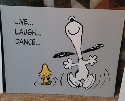 [This review was collected as part of a promotion.] Got this set to hang up in my kids room. they are already so excited to have snoopy on their wall, and keep asking what the saying are. the only thing I dont like is the live, laugh, dance, has the gray background, so the set is not seemless.