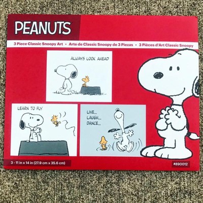 [This review was collected as part of a promotion.] I received the Classic Snoopy Unframed Wall Art and I love it. Snoopy and Woodstock are two of my favorite Peanuts characters. The wall art came in a set of 3 and I like that they can be used as a set or individually. These are so adorable, they will make a perfect gift for a nursery or child's room, or for those still young at heart that just love Snoopy. Because they are made of very good quality they look fine whether you frame them or not. Definitely recommend the Classic Snoopy Unframed Wall Art.