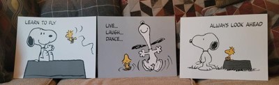 Decorate your child’s room with some of Charles Schultz’s favorite Snoopy poses and phrases. These three individual prints are a great way to add a feature wall to your little one’s room. They are professionally printed on matte card stock and are perfectly sized at 11” X 14” each to create a stunning décor when hung on a wall together. You can frame them or stick them up directly on the wall. Frames and sticky dots are not included.
