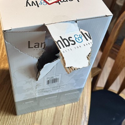 Purchased this as a baby shower gift, it was the ONE thing the mama to be really wanted. Upon arrival the box was damaged and lamp shade dented, the item is sold out everywhere so can’t exchange it for another.
