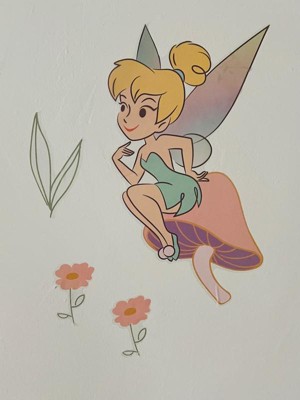 [This review was collected as part of a promotion.] My baby loves Tinker Bell so much that this wall decals are perfect for her. Super easy to put it on, it can be taken off to adjust as well. I had no hard time putting it on my baby bedroom. It comes with 3 pieces and you can put them on the wall however you like. They stay on pretty well and super cute, super durable!