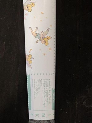 Tinker Bell wall decals will add a touch of magic to your baby or child’s room. It is a great way to add a mural like look to any feature wall. There are 3 sheets of decals that are 12 inches by 18 inches each. Includes three favorite Tinker Bell poses along with flowers, stems, leaves, stars, and a dragonfly. The finished size is approximately 28 inches by 48 inches when applied as shown. It is printed on clear vinyl and has 19 die-cut pieces.