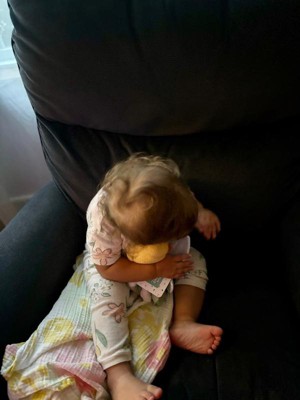 [This review was collected as part of a promotion.] This is a super cute toy and my daughter wanted it right away. It’s a nice size for a one year old and she likes walking around with it. The material has a nice texture to it as well. The only problem I noticed was there was a little ripping near her neck and we have only had the toy for a few days.