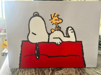 Snoopy to the Rescue! Conquer nursery chaos with this adorable foldable Snoopy storage. Sized at 12 ½” X 11” X 9” this space saving storage basket folds flat when not in use. The front and back features Snoopy lounging on his red doghouse with Woodstock perched comfortably on his tummy. Made of high-quality polyester canvas with two sturdy carrying handles making it easy to transport from room to room.