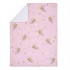 This soft and cozy 30” X 40” Tinker Bell Baby Blanket is the perfect way to cuddle your little one. The front is a soft pink polar fleece with twelve Tinker Bells, white stars, dragonflies and pretty pastel flowers. Great to use as a stroller blanket, over a car seat, or for cuddling baby. The back is a soft, white lux faux shearling. This blanket makes a great baby shower gift or welcome home baby gift. Machine washable for easy care.
