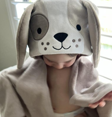 I was gifted Puppy Cotton Hooded Bath Towel w/ Velour Hood from lamb and ivy for my honest opinion. Bath time just got so much funner. The fabric is gentle on skin. Very adorable towel. Great strong material. Recommend
