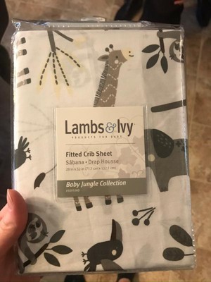 Lambs & Ivy Baby Jungle Animals White/Gray/Taupe Cotton Fitted Crib Sheet
