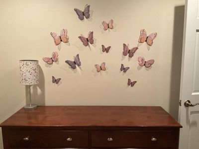 [This review was collected as part of a promotion.] I had high hopes for this but the quality wasn’t there. It was shipped in a nice padded envelope and it was folded in half to fit, folding the butterflies in half! Then the in-person quality was not there. They looked cheap and did not hold their 3D shape, even when bent to do so several times. They stuck to the wall easily but I was worried if it was kept there for a while, the sticker would take off the wall paint. Also, if you had to move them, they would not re-stick and the sticker would rip off the butterfly. Sadly, I was not impressed with these as much as I wanted to love them.