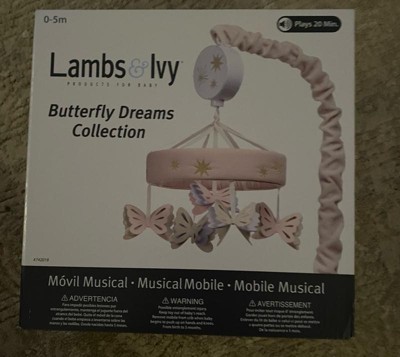 Lambs & Ivy Butterfly Dreams Pink/Purple Musical Baby Crib Mobile Soother Toy