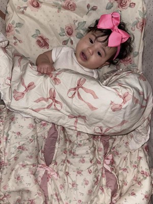 Lambs & Ivy Coquette Floral Pink Bows Aesthetic 3-Piece Baby Crib Bedding Set