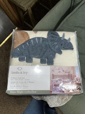 Lambs & Ivy Dino-Might 3-Piece Blue/Gray Dinosaur Nursery Baby Crib Bedding Set