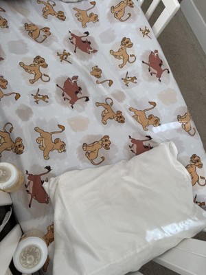 - Simba, Pumbaa, and Timon decorate this fitted crib sheet in some of their favorite poses