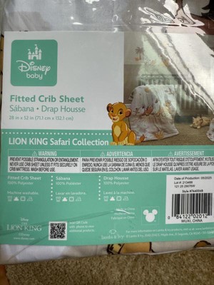 The Disney Baby Lion King Safari fitted crib sheet features Simba, Pumbaa, and Timon on a soft white ground in some of their favorite poses. Made in a soft microfiber material that is gentle on baby’s delicate skin. There is elastic all the way around ensuring a safe and secure fit on a standard size crib mattress measuring approximately 52 inches by 28 inches.