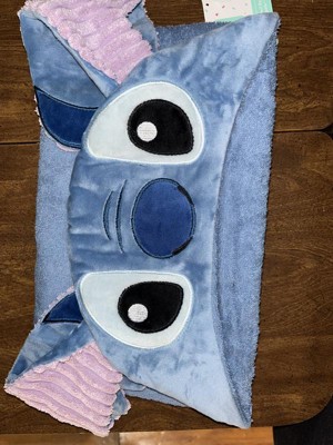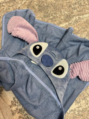 Your little one will love being wrapped in this soft and cozy Disney Stitch hooded towel. The hood is velour and is lined in a medium blue 100% cotton terrycloth. The pure cotton terry towel is absorbent, and the binding is made of cotton jersey. The hood of the towel features Stitch with his 9” long 3-dimensional ears. The hooded towel is 34” wide and 23” high and is recommended for babies up to 30 pounds. This makes an adorable baby shower gift or welcome home baby gift.