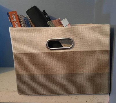 [This review was collected as part of a promotion.] This collapsible storage basket is so nice. The neutral color makes it look great with any décor. It seems very sturdy. The short sides aren't as sturdy as the long sides are. It still seems durable. I homeschool my son. This basket was just what I needed for the books that we use every day. This basket will work for so many different things. It only has one handle, but it is still easy enough to pick up and move without the other handle. I like that it folds, so that when it is not in use, it is compact to store.