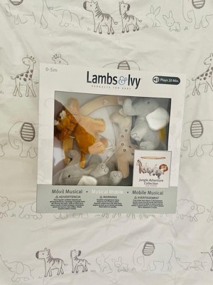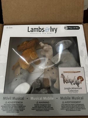 Lambs & Ivy Jungle Adventure Elephant/Lion Musical Baby Crib Mobile Soother Toy