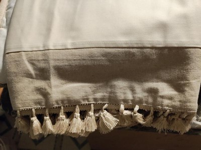 - The decorative crib skirt with tassel trim has 16 inch long drop