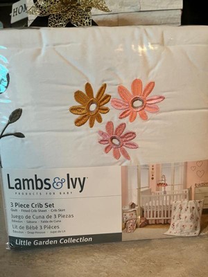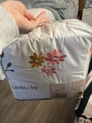 Lambs & Ivy Little Garden 3-Piece Embroidered Floral Baby Crib Bedding Set