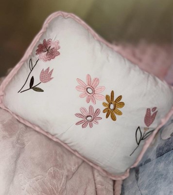 Lambs & Ivy Little Garden Luxury Embroidered Floral Decorative Throw Pillow