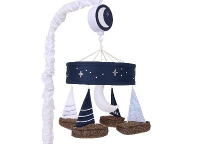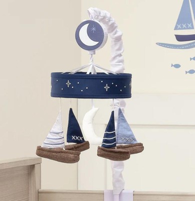 Lambs & Ivy Little Skipper Sailboat & Moon Musical Baby Crib Mobile Soother Toy