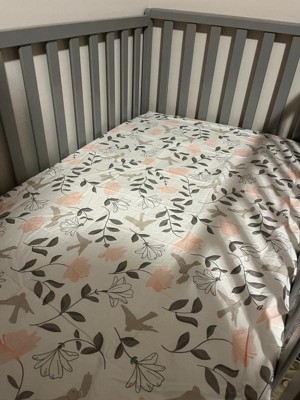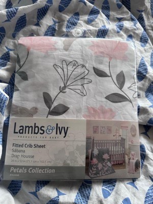 Lambs & Ivy Petals White/Pink/Gray Floral 100% Cotton Fitted Crib/Toddler Sheet