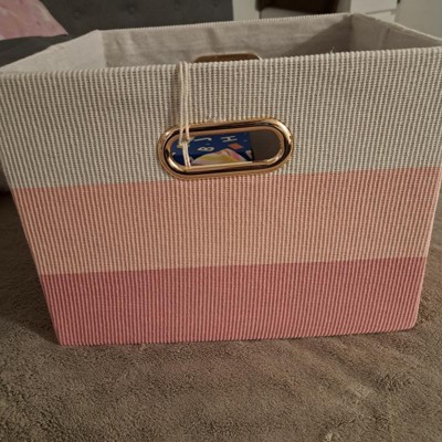 [This review was collected as part of a promotion.] This collapsible storage basket is so cute and actually, very sturdy and functional! When it expands, it has a firm piece to put in the bottom of the basket to hold its shape and be a sturdy base for whatever you choose to put inside! The pink is adorable, and works perfectly for my daughter's room, and the little handles are a cute gold color.